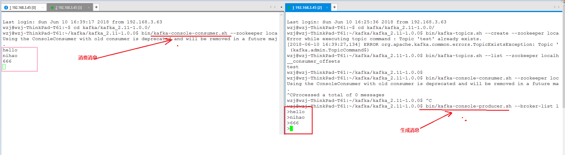 bin/kafka-topics.sh --create --zookeeper localhost:2181 --replication-factor 1 --partitions 1 --topic test