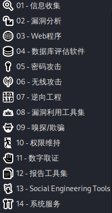 Kali Linux预装了许多渗透测试软件,包括nmap 、Wireshark 、John the Ripper,以及Aircrack-ng.[2] 用户可通过硬盘、live CD或live USB运行Kali Linux。Kali Linux既有32位和64位的镜像。可用于x86 指令集。同时还有基于ARM架构的镜像,可用于树莓派和三星的ARM Chromebook