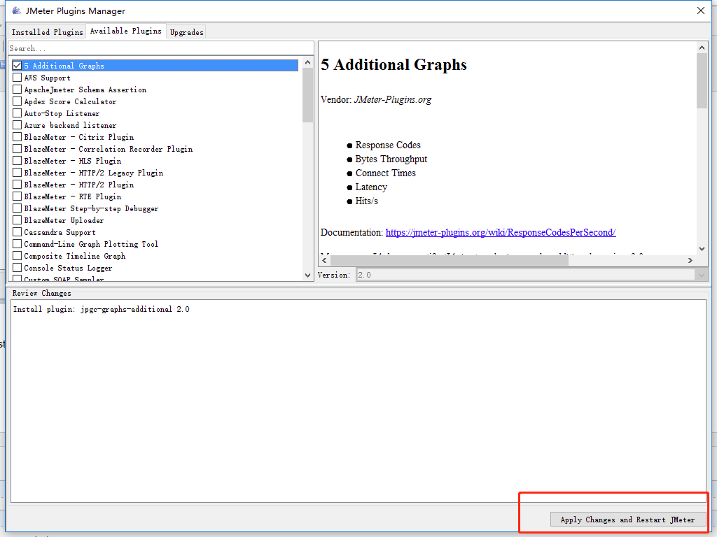 5.点击右下角Apply Changes and Restart JMeter 会自动安装并重启Jmeter