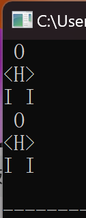 1 #include <stdio.h> 2 3 int main() 4 { 5 printf(" O \n"); 6 printf("<H>\n"); 7 printf("I I\n"); 8 9 printf(" O \n"); 10 printf("<H>\n"); 11 printf("I I\n"); 12 13 return 0; 14 }