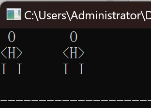 1 #include <stdio.h> 2 int main () 3 { 4 printf(" O \t O \n"); 5 printf("<H>\t<H>\n"); 6 printf("I I\tI I\n"); 7 8 return 0; 9 }