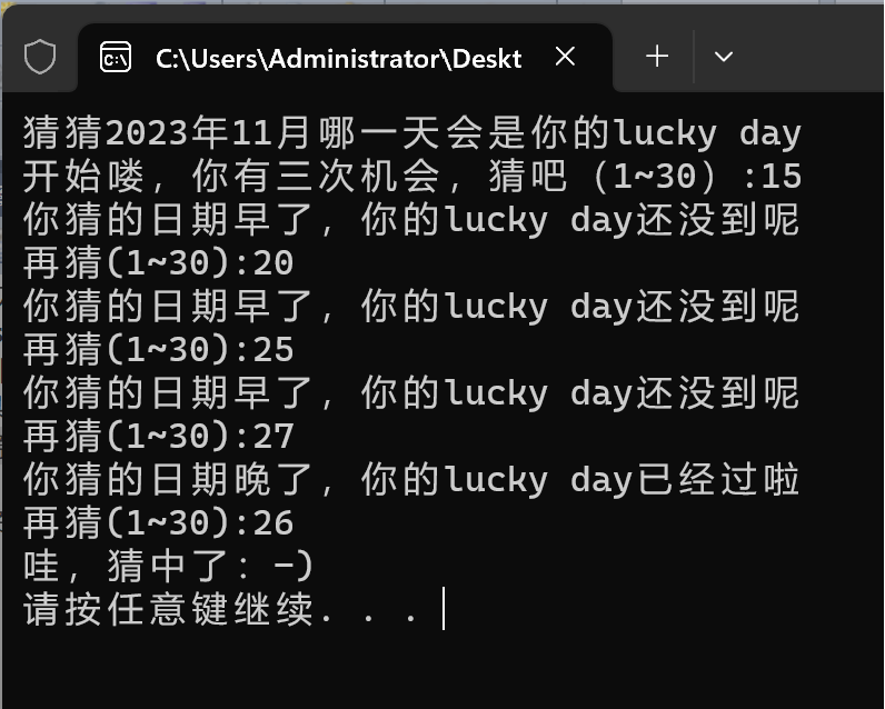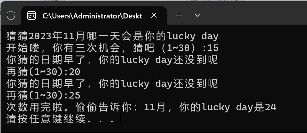 10 printf("猜猜2023年11月哪一天会是你的lucky day\n");