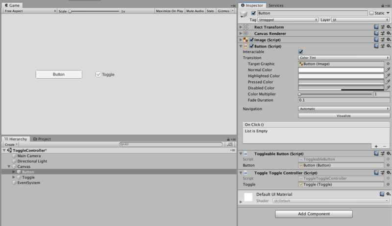 这样,我们就可以在同一个 GameObject 上添加需要的 Toggleable 和 ToggleController 组件实现不同的控制方式了,例如: