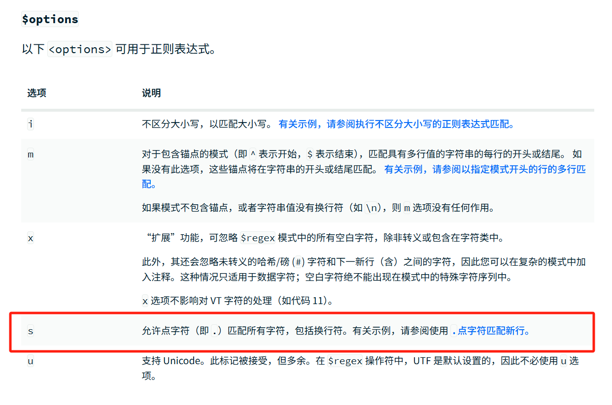 https://www.mongodb.com/zh-cn/docs/manual/reference/operator/query/regex/