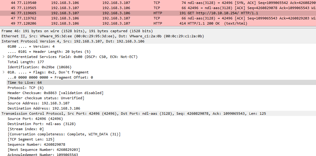 在第一台curl 10.10.10.254 ,抓包发现虽然请求host是10.10.10.254,但是目的ip是代理服务器的ip