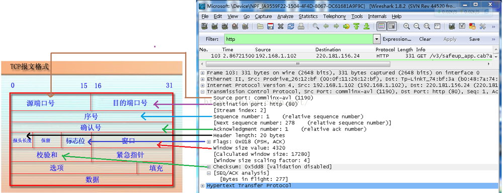 1:SYN/ACK:即序列号与确认号,允许连接的双方在发送数据时,同时对对方的数据段进行确认