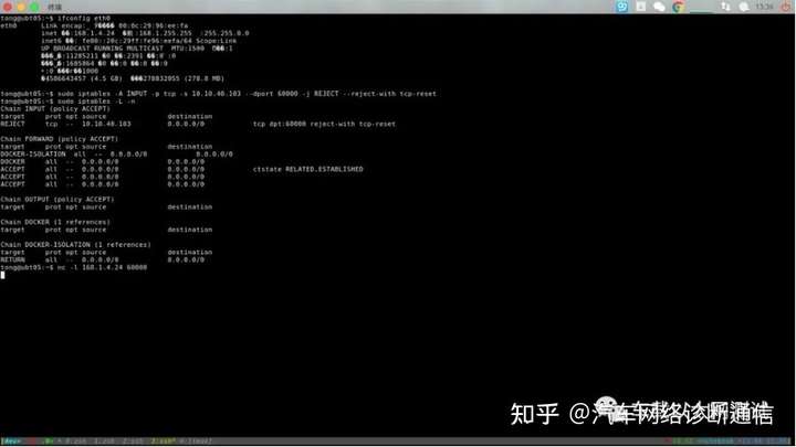 使用iptables对主机的防火墙添加了一条规则,对于目的端口是60000的TCP报文,丢弃并回复RST