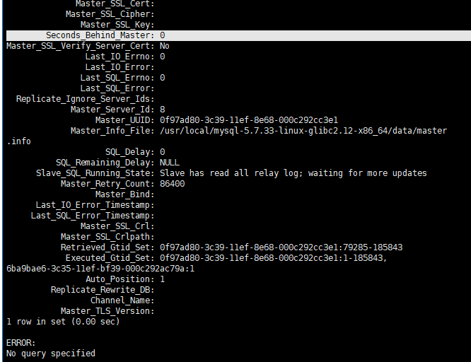 Seconds_Behind_Master: 0 这是比主库慢了多少秒,正在执行主多少秒的事件
