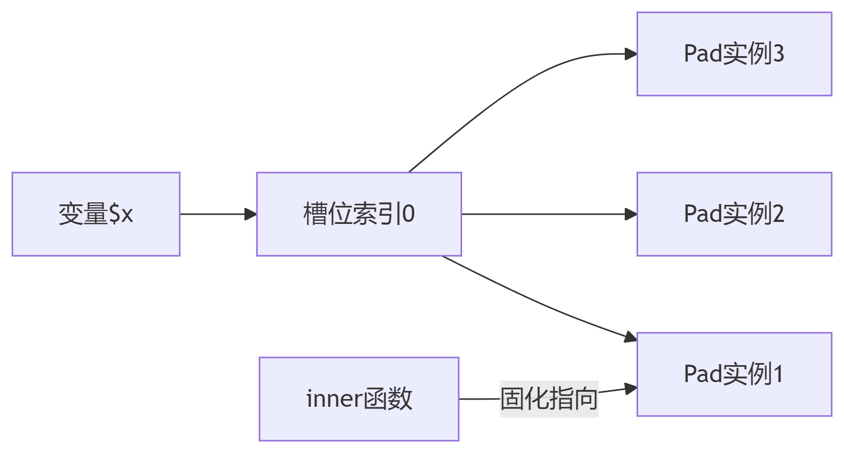 闭包破坏:inner 直接跳过映射,指向具体Pad实例