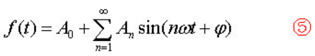 这里,t是变量,其他都是常数。与上面最简单的正弦周期函数相比,5式中多了一个n,且n从1到无穷大。这里f(t)是已知函数,也就是需要分解的原周期函数。从公式5来看,傅里叶是想把一个周期函数表示成许多正弦函数的线性叠加,这许许多多的正弦函数有着不同的幅度分量(即式中An)、有不同的周期或说是频率(是原周期函数的整数倍,即n)、有不同的初相角(即ψ),当然还有一项常数项(即A0)。要命的是,这个n是从1到无穷大,也就是是一个无穷级数。
