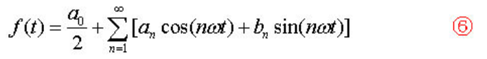 应该说,傅里叶是一个天才,想得那么复杂。一般人不太会把一个简单的周期函数弄成这么一个复杂的表示式。但傅里叶认为,式子右边一大堆的函数,其实都是最简单的正弦函数,有利于后续的分析和计算。当然,这个式能否成立,关键是级数中的每一项都有一个未知系数,如A0、An等,如果能把这些系数求出来,那么5式就可以成立。当然在5式中,唯一已知的就是原周期函数f(t),那么只需用已知函数f(t)来表达出各项系数,上式就可以成立,也能计算了。