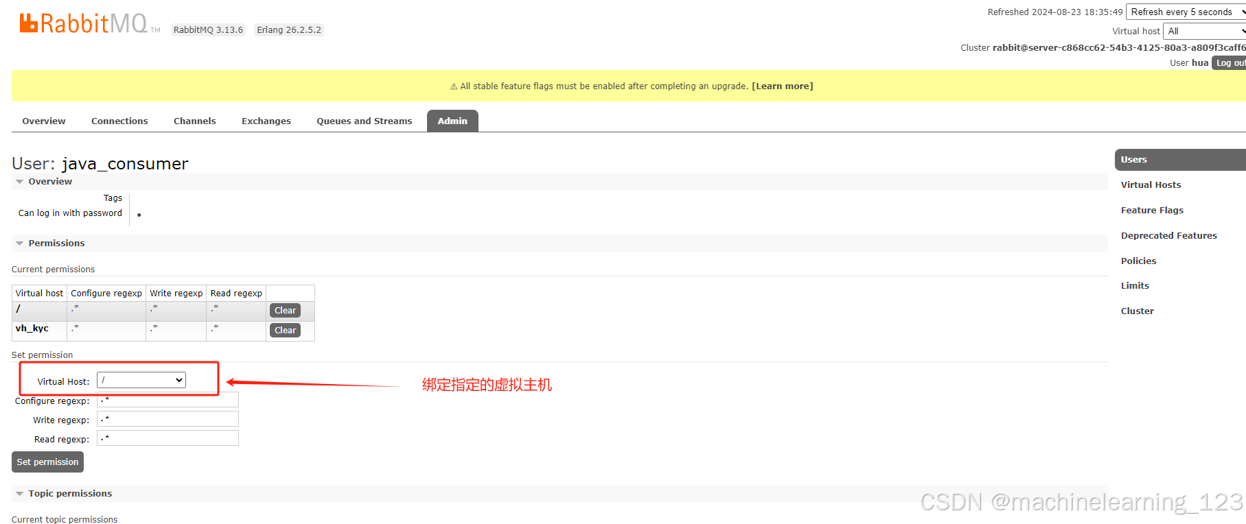 用户权限:不同的用户可以被授予不同虚拟主机的访问权限,确保用户只能访问指定的虚拟主机中的资源。