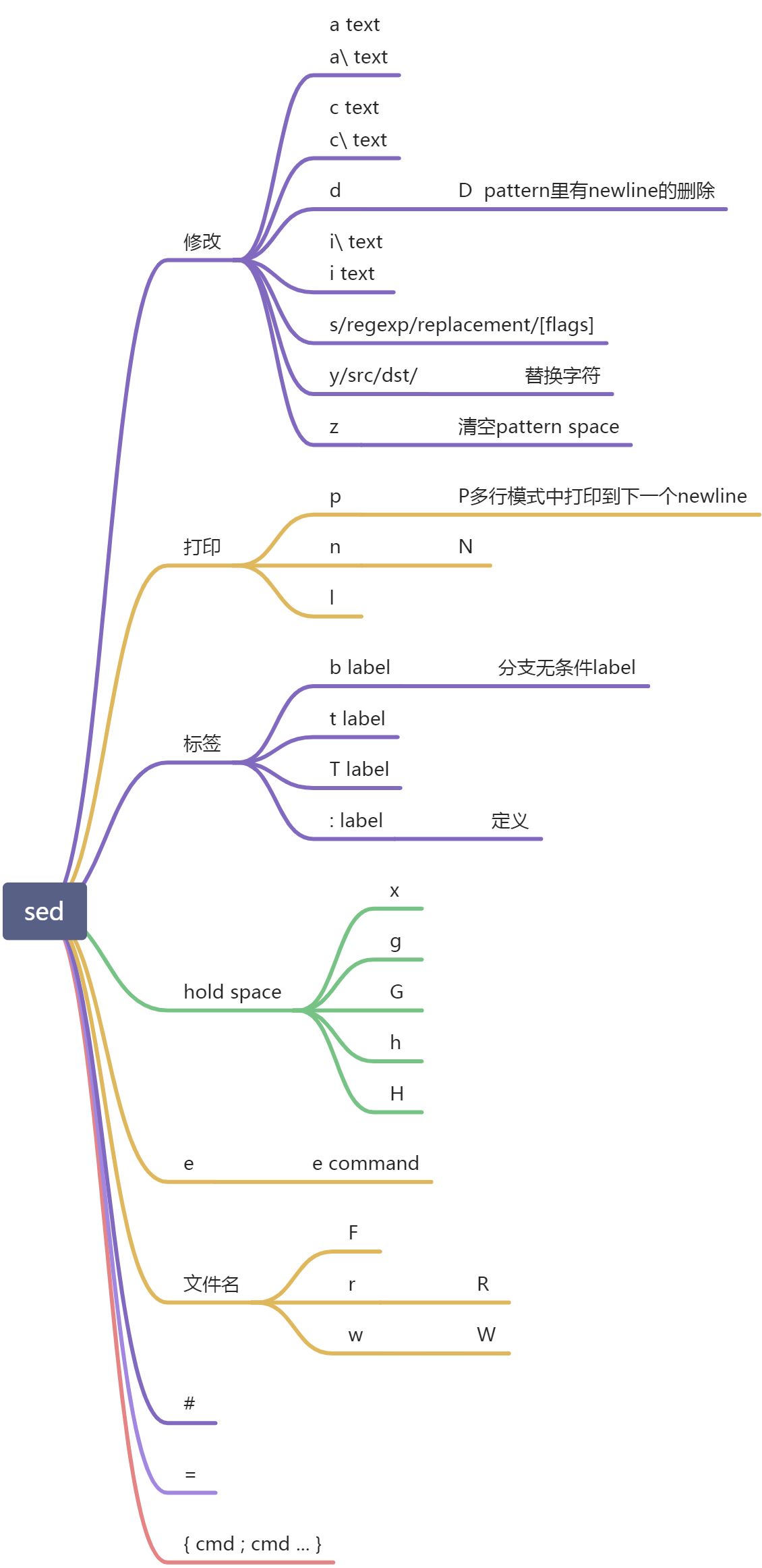sed维护两份数据缓存:pattern space和备用的hold space