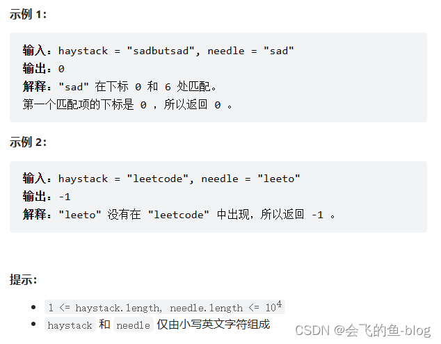 链接:https://leetcode.cn/problems/find-the-index-of-the-first-occurrence-in-a-string