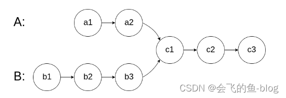 在 A 中,相交节点前有 2 个节点;在 B 中,相交节点前有 3 个节点。