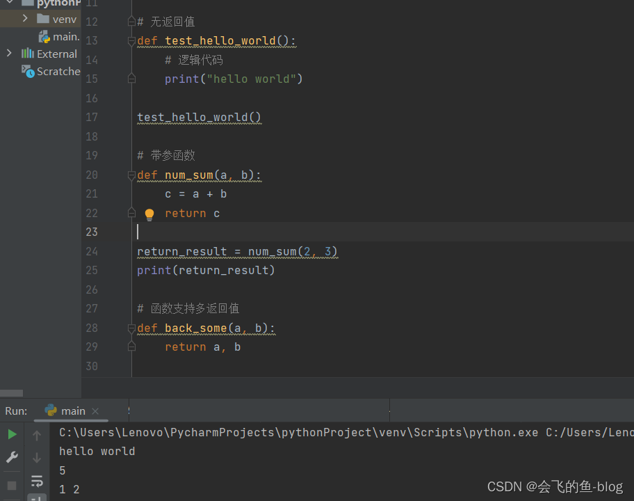 2.调用函数:语法是使用这个函数的名字,后面再给个圆括号: