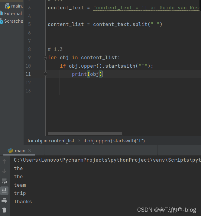 第三问:把以上所有以t(不区分大小写)开头的单词都找出来并打印。