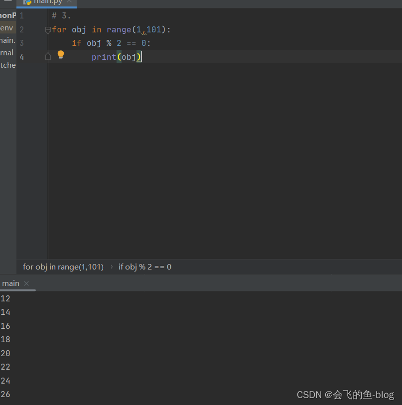 3.打印1-100之间所有的偶数。(能被2整除的数即为偶数)