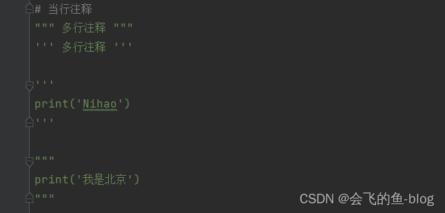 2、多行注释:使用 ''' 注释 ''' 或者 """ 注释 """,6个单引号或者6个双引号,注释内容放在中间。
