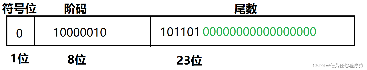 .625 -> .101 0.625 * 2 = 1.25 取整 1 ,剩下0.25 0.25 * 2 = 0.5 取整 0 , 剩下0.5 0.5 * 2 = 1 取整 1 ,剩下0 按顺序得到 101(直到小数部分为0) 13.625 => 1101.101 1101.101 小数点向左移动3位 => 1.101101 (要求移动到整数部分只有1位) 所以,阶码 = 3 + 127 = 130 二进制形式为:10000010 移位后的小数部分是 .101101 尾数存储二进制的101101 实际存储为: