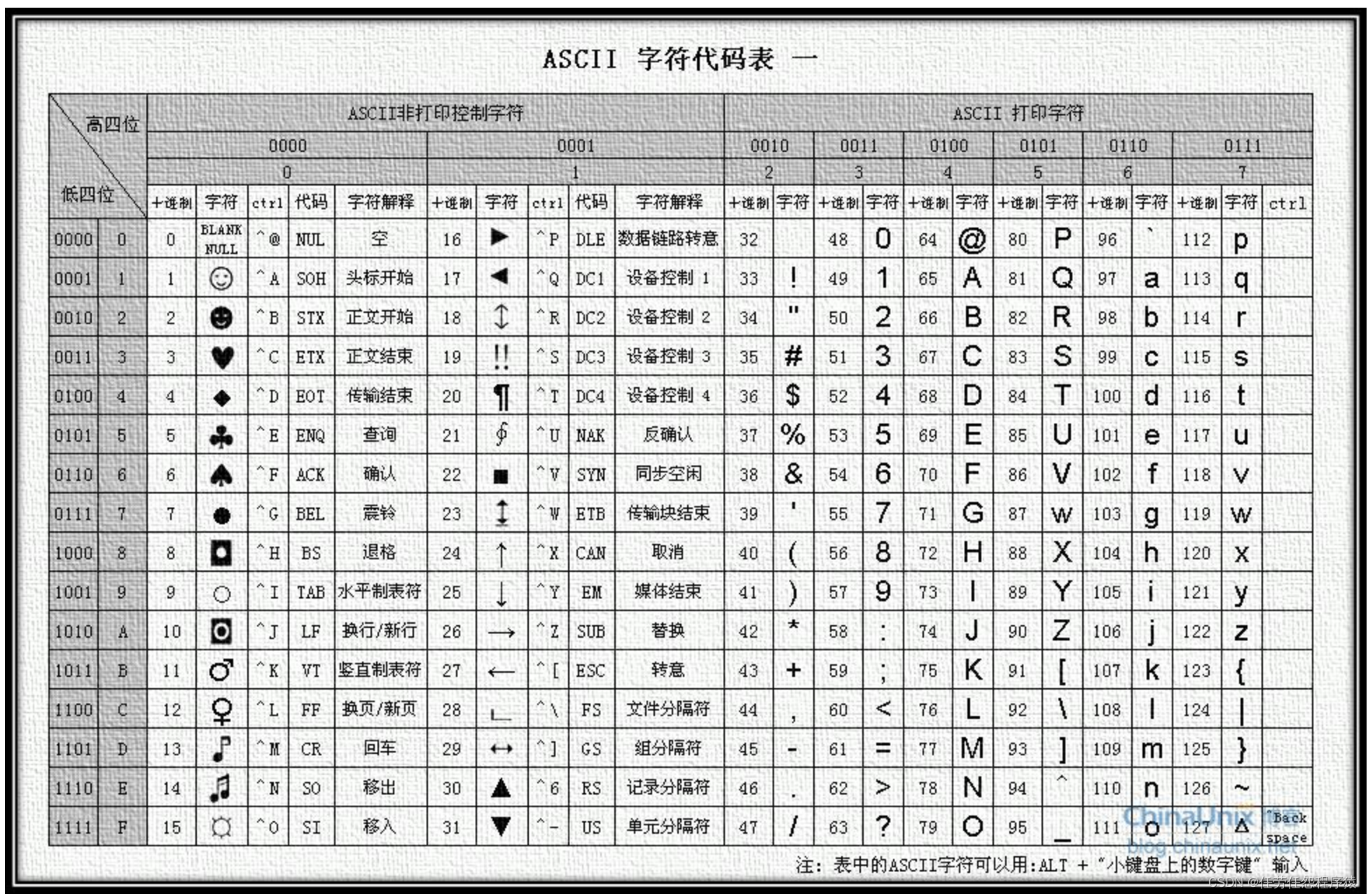 字符的实际表示: