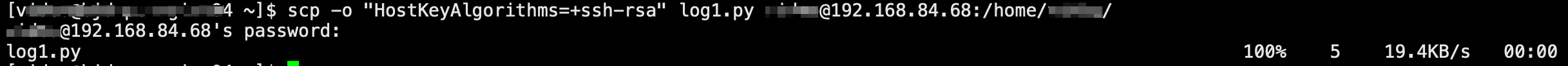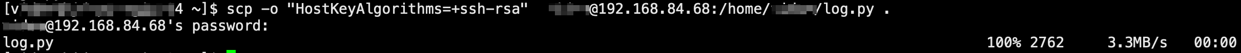 拉取 scp -o "HostKeyAlgorithms=+ssh-rsa" xxx@192.168.84.68:/home/xxx/log.py .