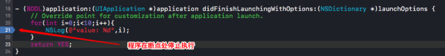 在上面的设置中,条件断点的条件是 i==3, 那么在整个循环中只有在i=3时程序才会在断点处停止执行。
