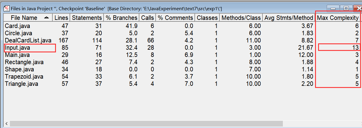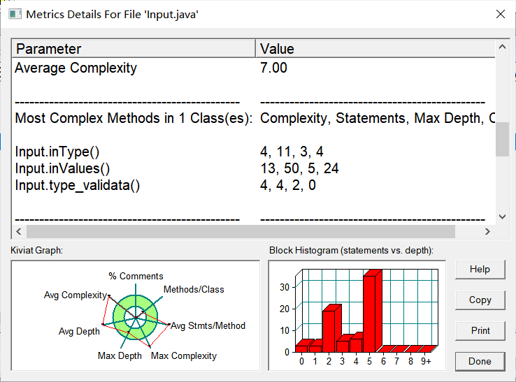 从圈复杂度可以看出来平均来说每个类的圈复杂度都蛮低的,也就是说从设计方面来说是可以的(老师给的类图)。这个Input类是我自己添进去的,为了保持Main类的单一职责。现在可以看到最大圈复杂度出现在了Input类中。截出具体Input类的情况如下。