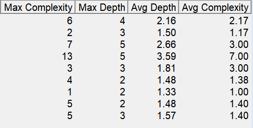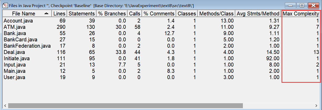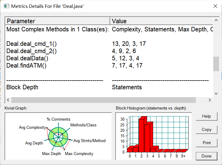 可以看出来总体在类设计上圈复杂度还是比较可观的,也可以说明初步我的类设计应该是没有什么问题的。现在就是有一个类Deal的圈复杂度过高了。从名字就可以看出来,这是一个处理数据的类。下面我给出具体的类详情。