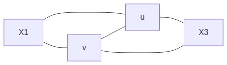 graph LR X1 --- u X1 --- v v --- u v --- X3 u --- X3 -