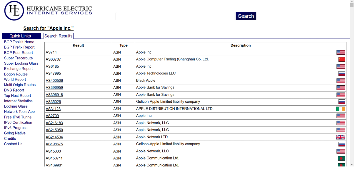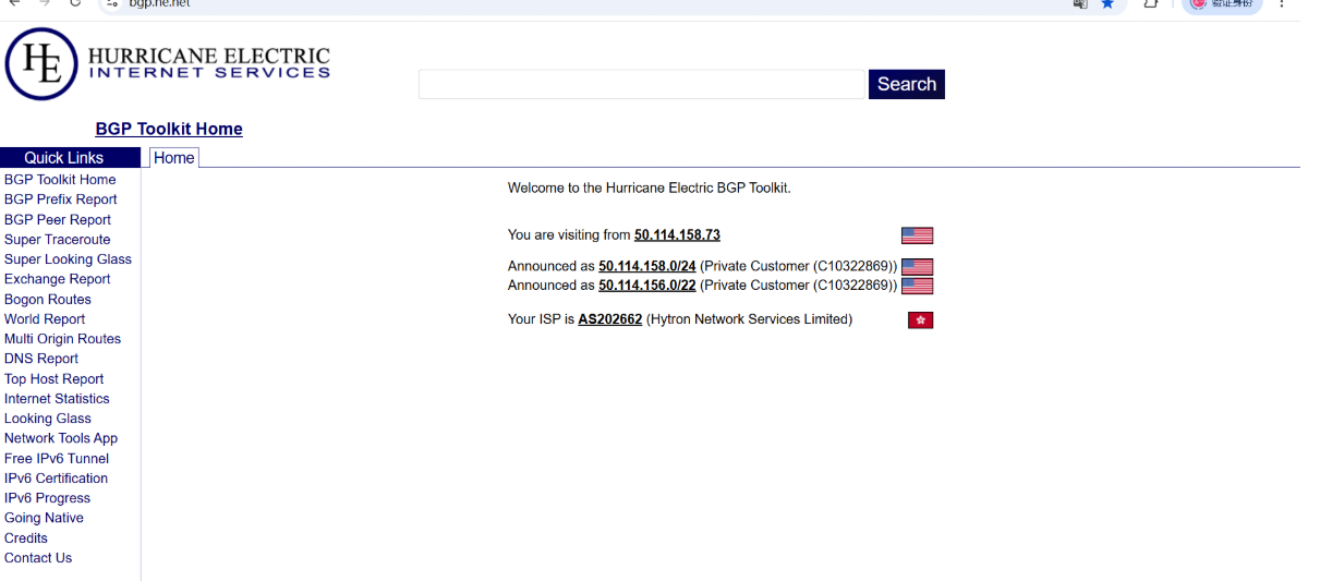 通过bgp网站如https://bgp.he.net/来查找ASN码