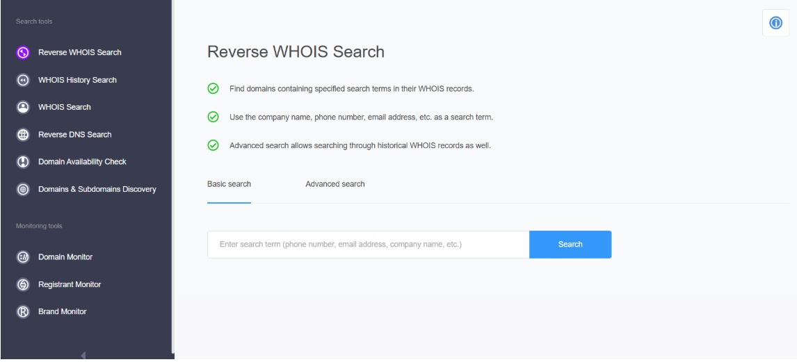 常用的查询工具:https://tools.whoisxmlapi.com/reverse-whois-search