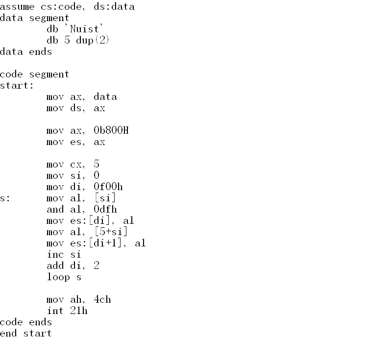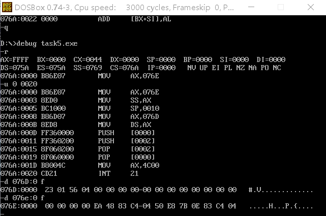 5.实验任务五:将task5.asm程序编译、连接,用debug加载、跟踪,然后回答问题