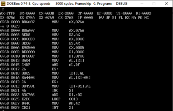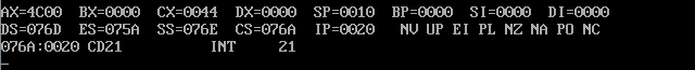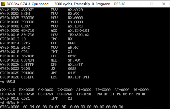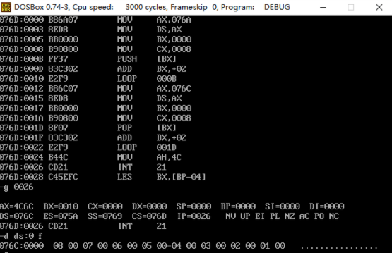 CPU执行程序,程序返回前,cs=076C, ss=0769, ds=075A