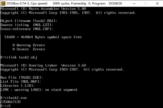 2)task2.asm运行结果