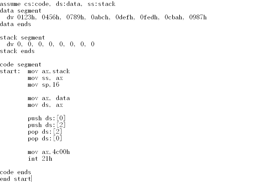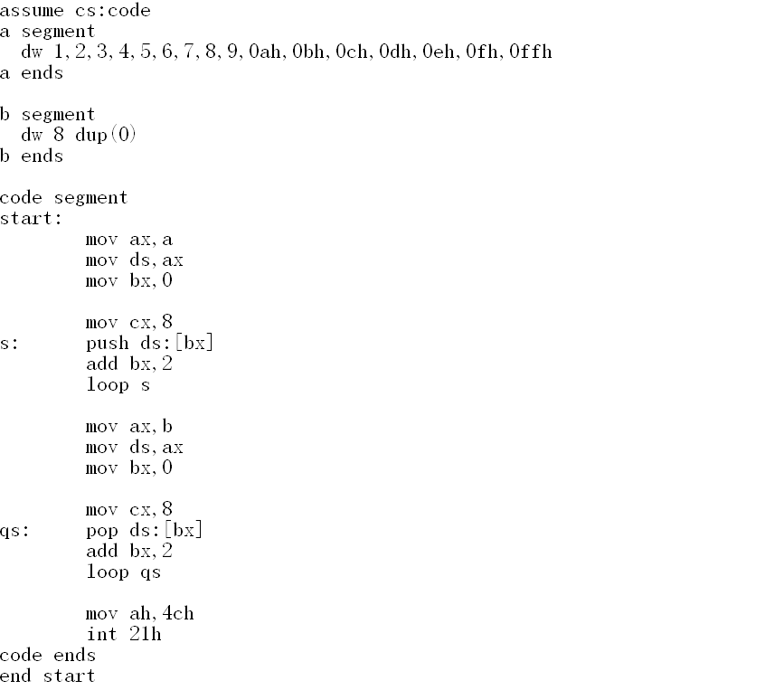 8.实验任务八:编写程序使程序实现将a段中的前8个字型数据,逆序存储在b段中,要求使用push指令。