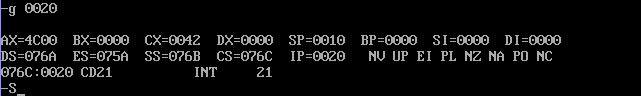 CPU执行程序,程序返回前,cs=076A, ss=0769, ds=075AA