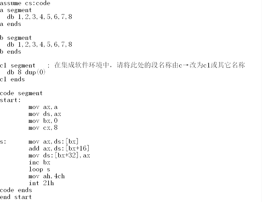 7.实验任务七:编写程序使程序实现将a段和b段中的数据依次相加,并将结果保存在c段中。