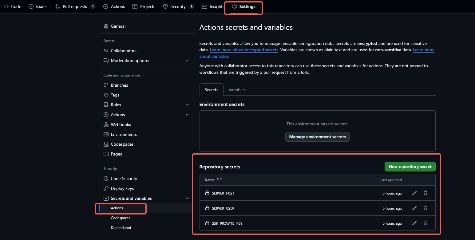 - SSH_PRIVATE_KEY:粘贴完整的私钥内容(包括-----BEGIN RSA PRIVATE KEY-----和-----END RSA PRIVATE KEY-----)