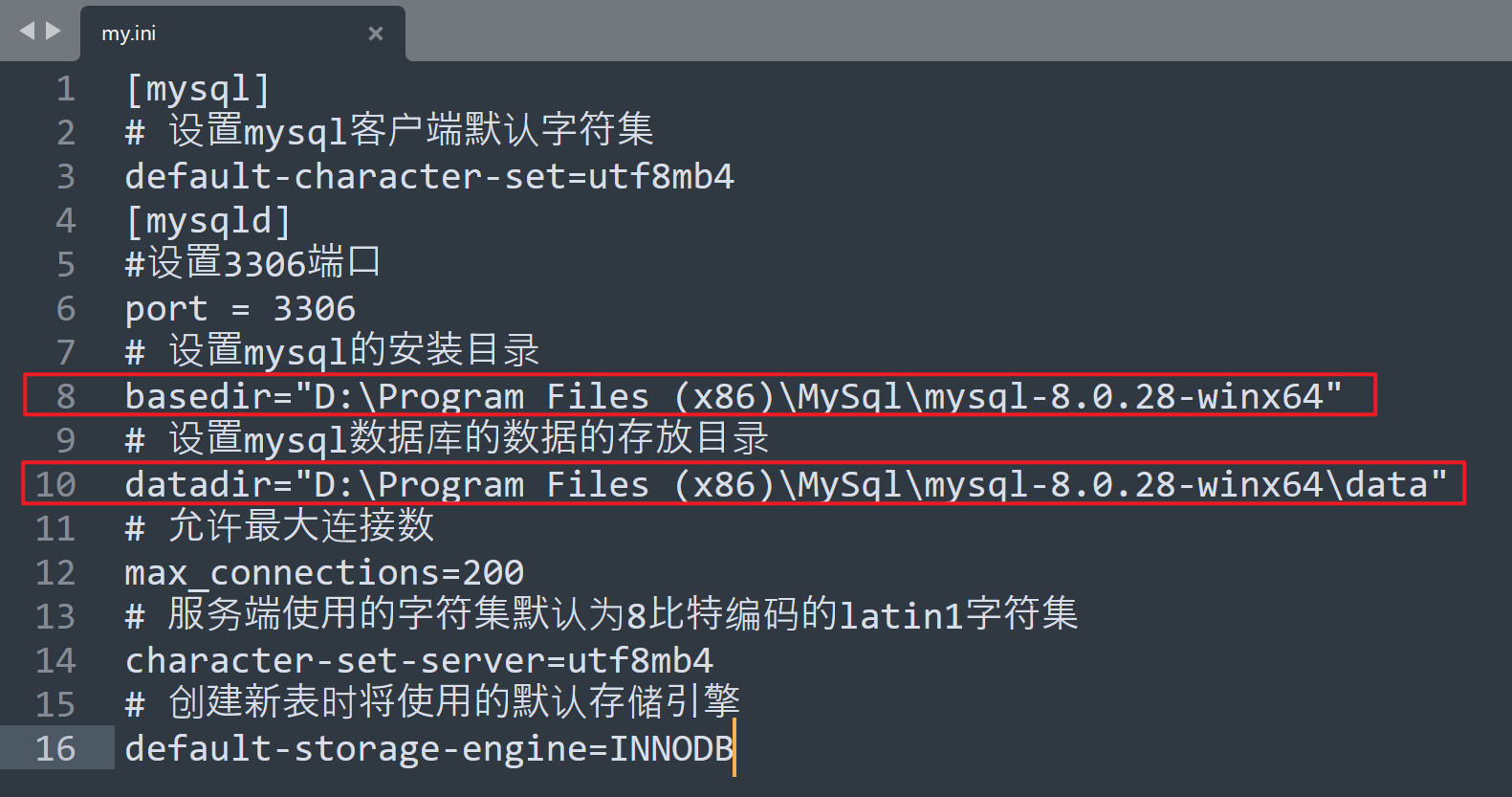 datadir="D:\Program Files (x86)\MySql\mysql-8.0.28-winx64\data"