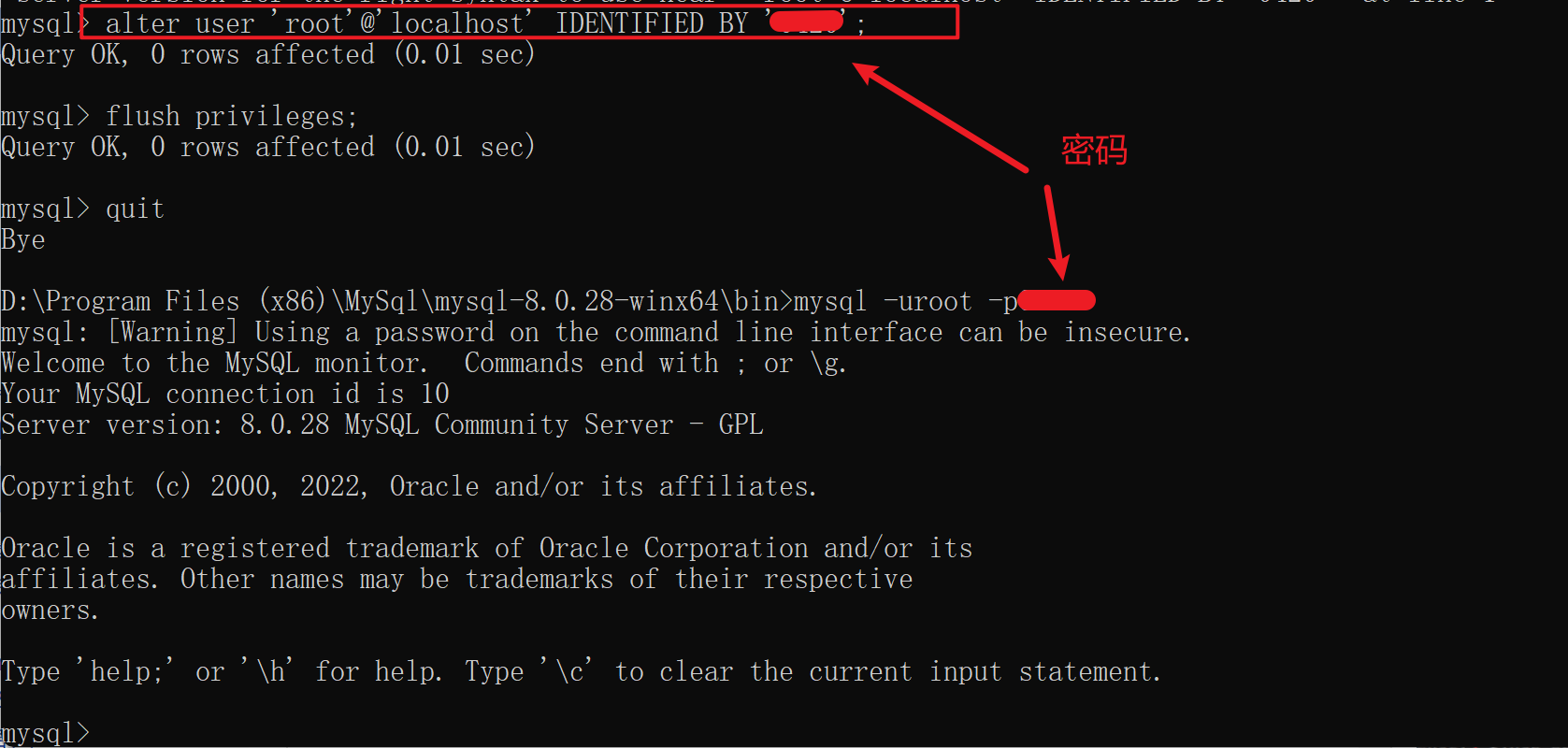 alter user 'root'@'localhost' IDENTIFIED BY 'password';