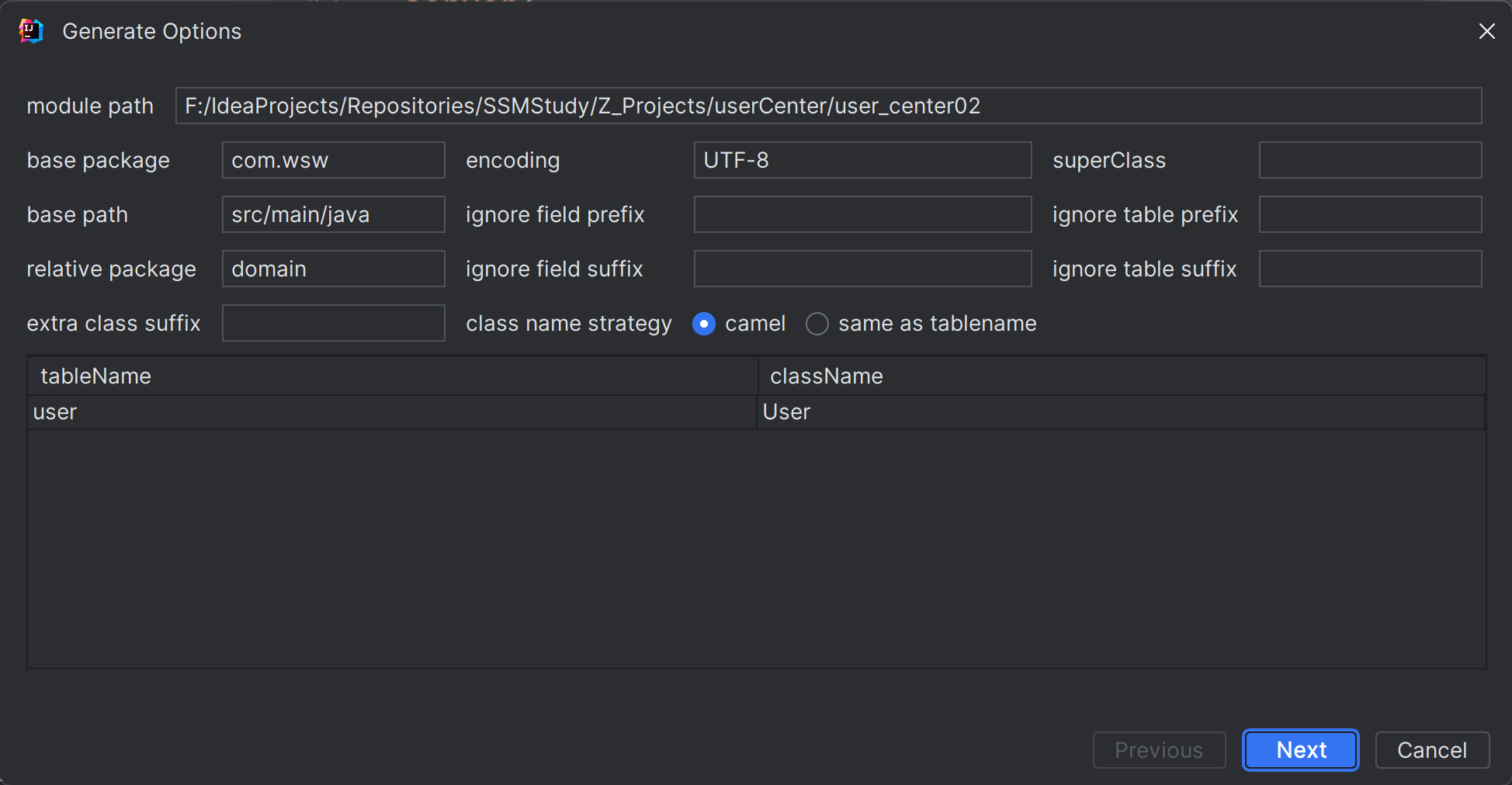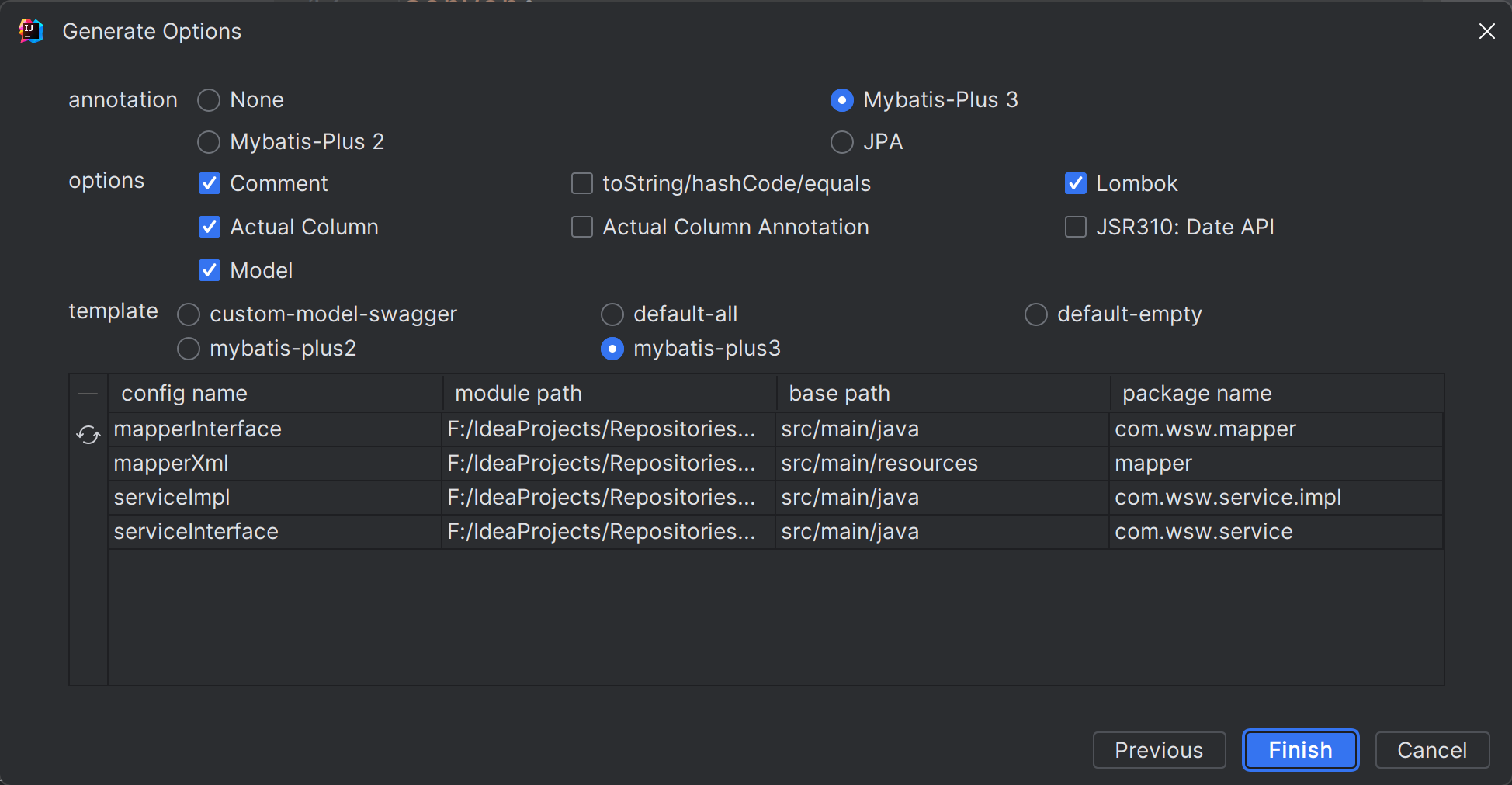Actual Column:生成的成员变量名会和数据库字段保持一致。