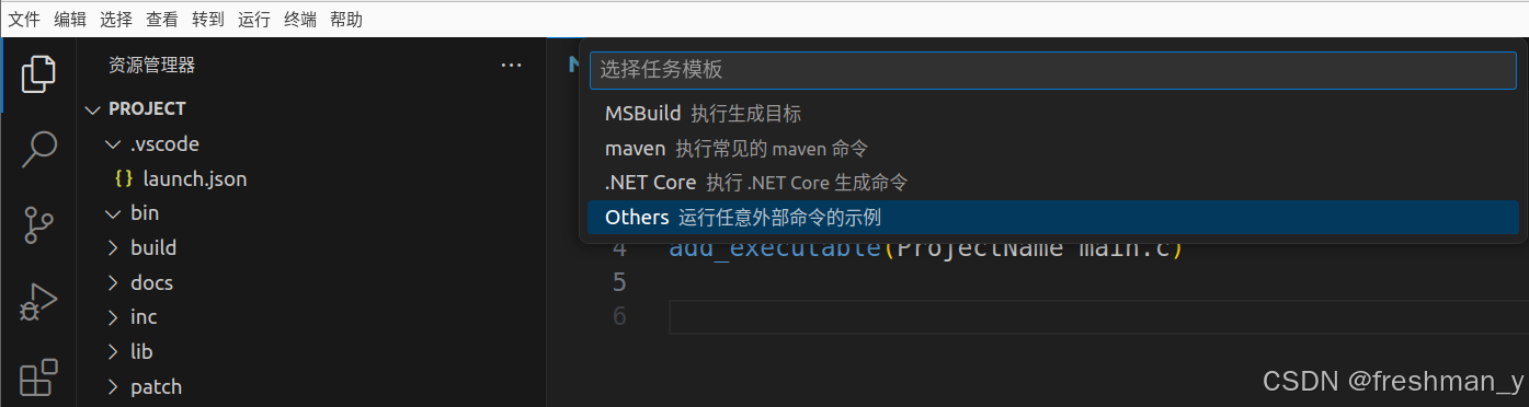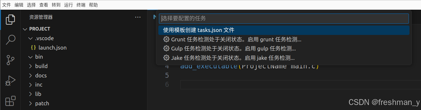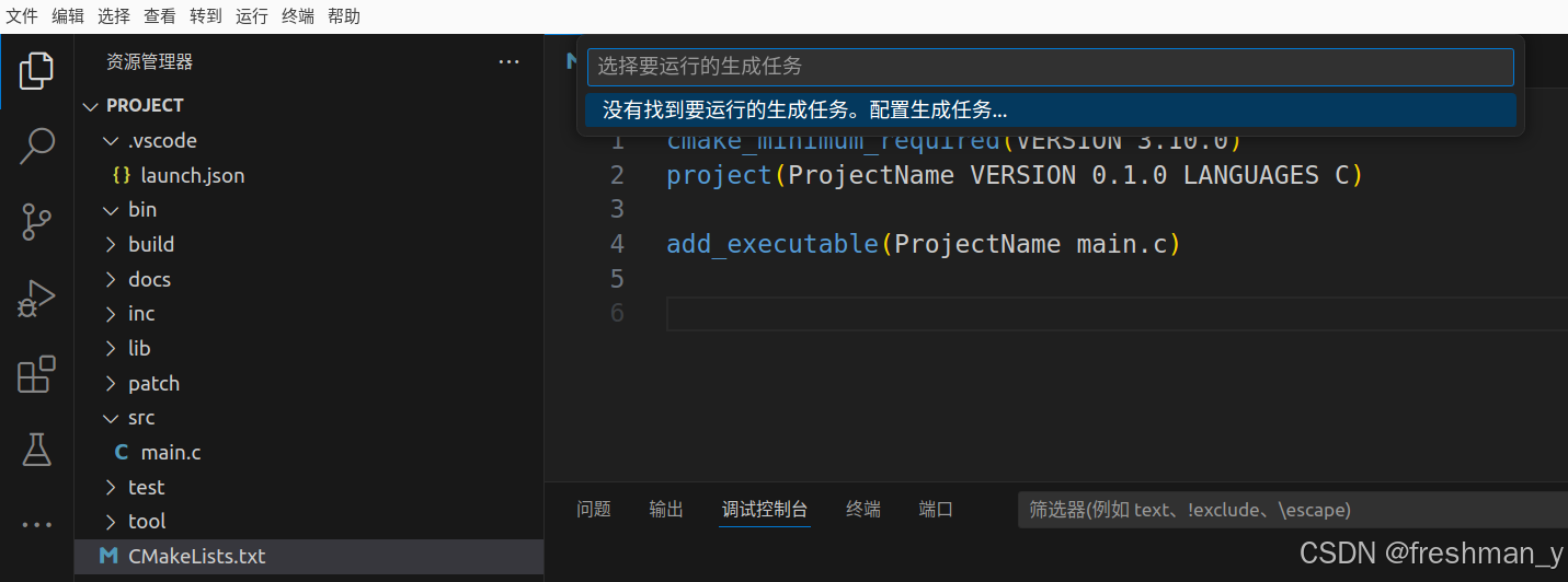 5、选中 CMakeList.txt ,按CTRL+shift+B 开始构建,点击配置生成任务