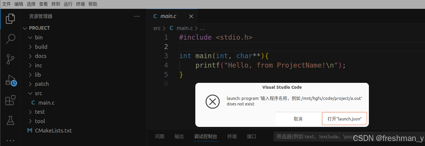 将 program 修改成红线处 (解释:会在 bin 目录下生成可执行文件 main)