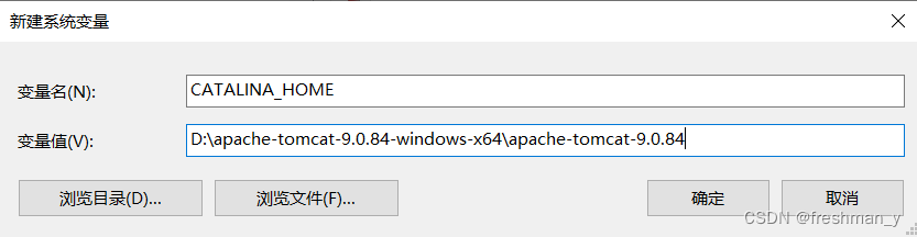 1)新建系统变量,变量名为CATALINA_HOME 变量值为解压文件夹的路径 (就是bin所在的位置) 接着点击确定就行。