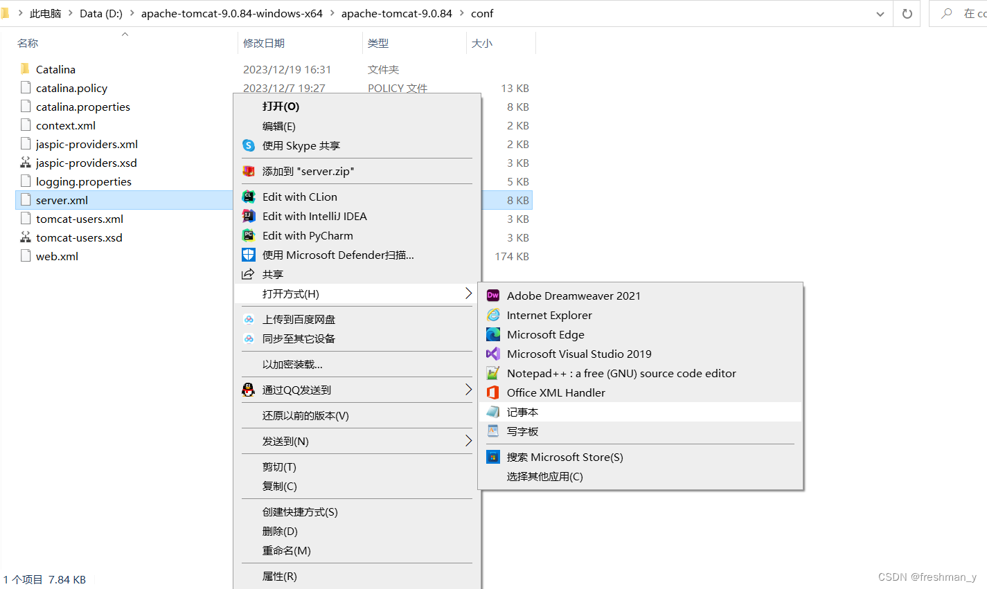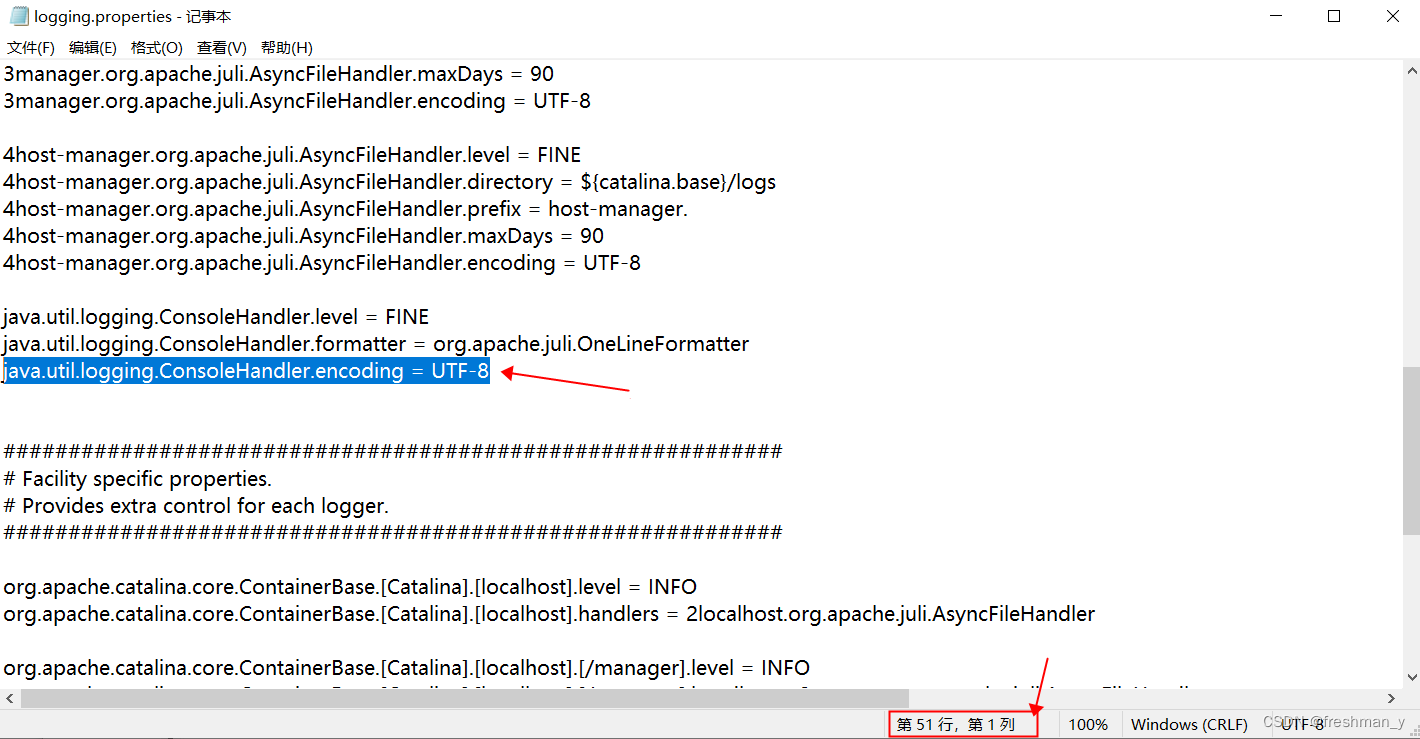 1、用记事本打开apach-tomcat-9.0.84->conf->logging.properties