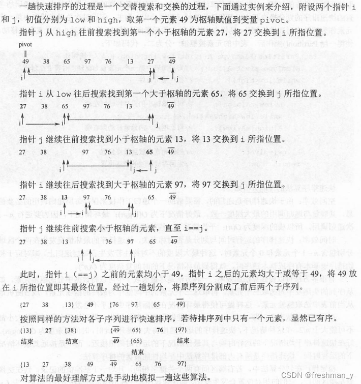 QuickSort(A,low,pivotpos-1); //依次对两个子表进行递归排序