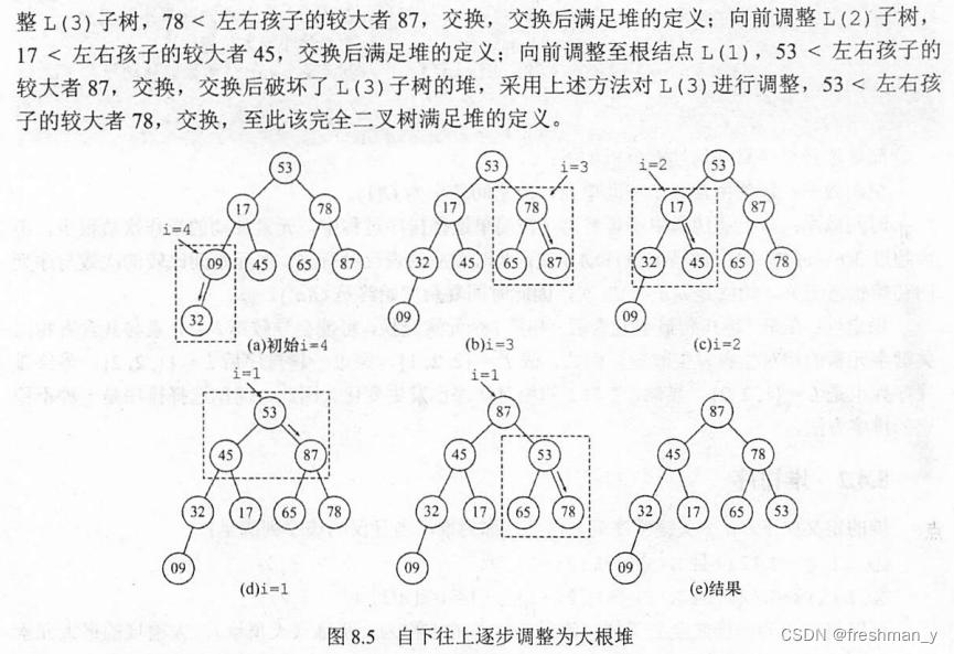 for(int i=len/2;i>0;i--) //从i=[n-2]~1,反复调整堆