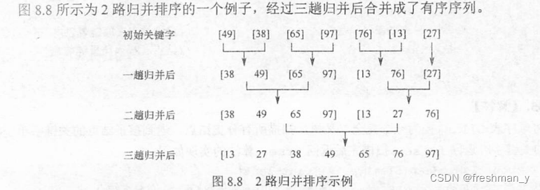递归形式的2路归并排序算法是基于分治的,其过程如下: