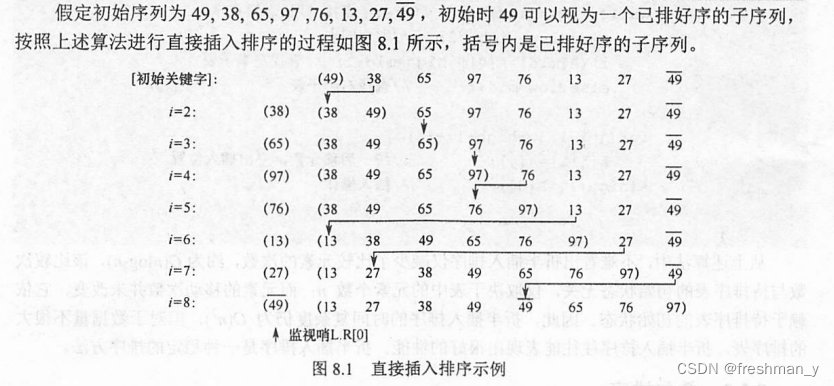for(i=2;i<=n;i++) //依次将A[2]~A[n]插入前面已排序序列
